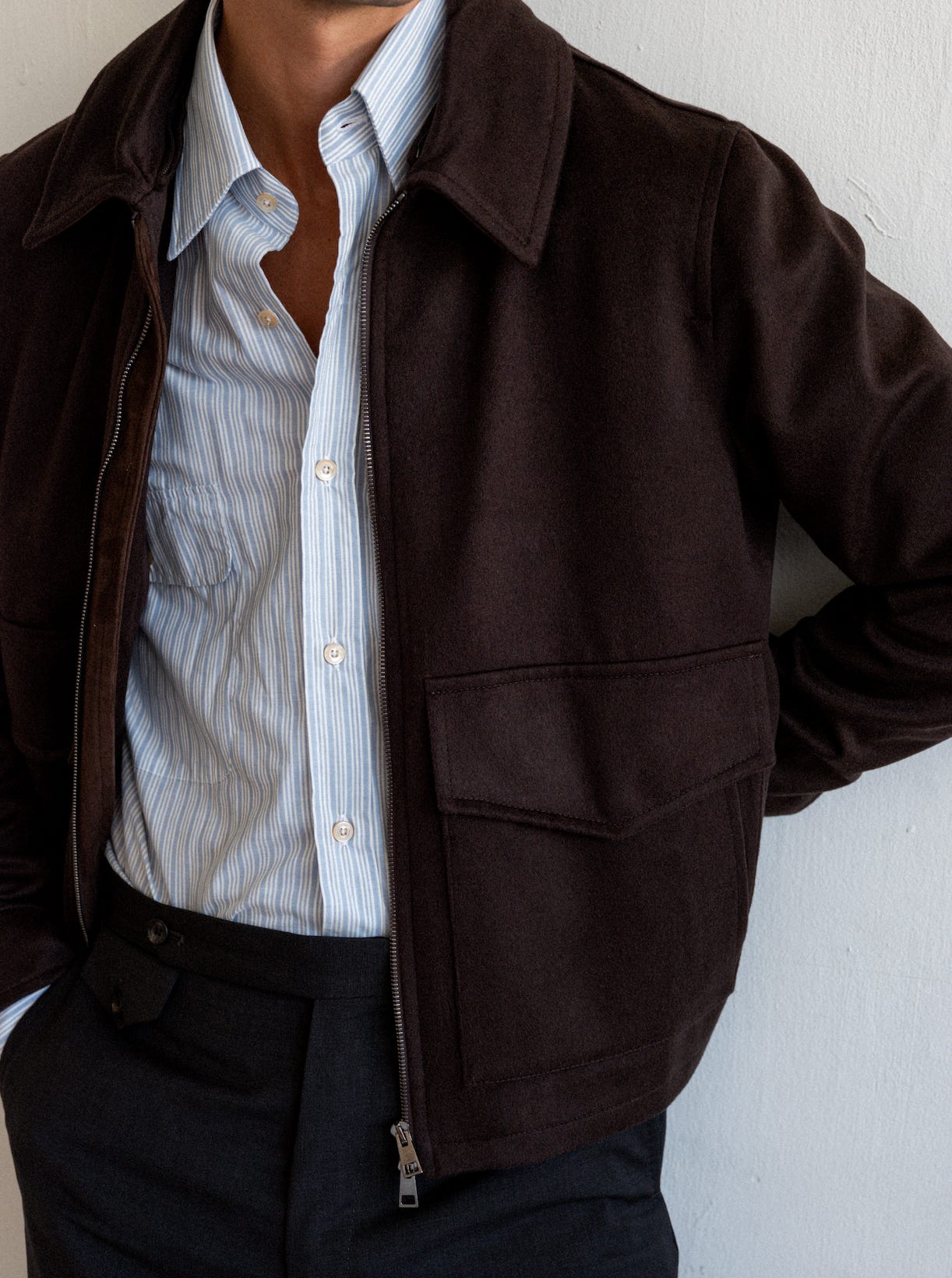 J. Mueser Brown Cashmere Flight Jacket